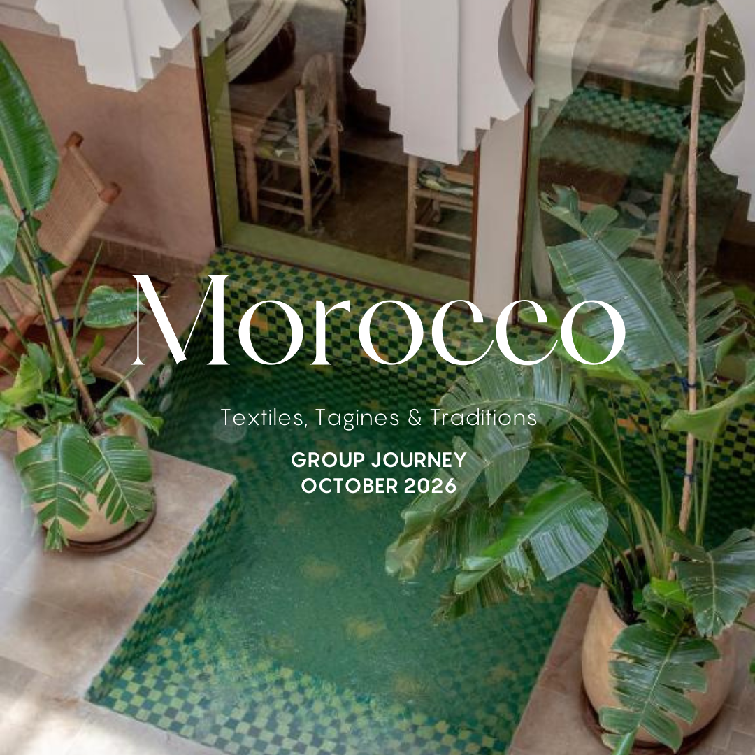 Step into a land of vibrant souks, ancient medinas, exquisite craftmanship, breathtaking mountain vistas and soulful connections with an incredible group of women on a 16 day 15 night craft tour through the heart of Morocco. From the imperial charm of Fes to the winding souks of Marrakech, the sea breeze of Essaouira and the timeless artistry of Morocco’s crafts and textiles, this journey will have you fall in love with the beauty, culture, and traditions of this extraordinary country, mint tea included.